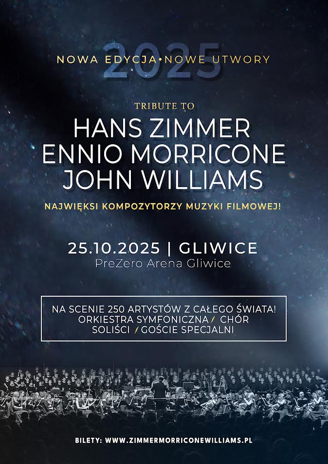 Już wkrótce miłośnicy muzyki filmowej będą mieli okazję uczestniczyć w niezwykłym wydarzeniu, które z pewnością na długo zapadnie w pamięć. „Tribute to Hans Zimmer, Ennio Morricone, John Williams” to hołd dla trzech legend światowej muzyki filmowej, którego nie można przegapić!